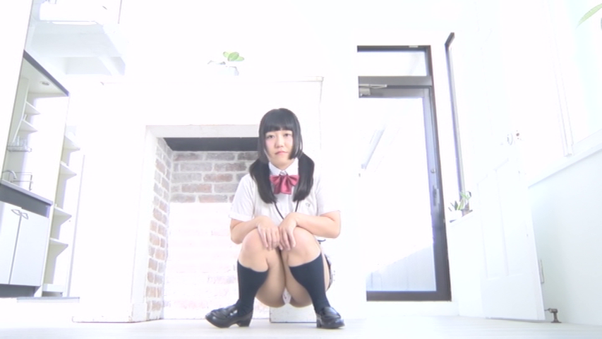 制服姿でブラウスの前を開いて胸をアップで見せたり、各シーンで上半身裸になっています。