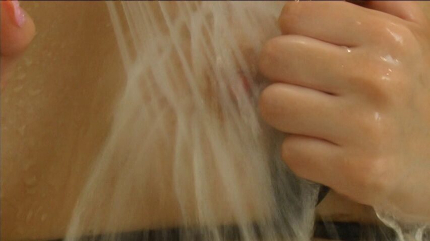 最後のシーンでは、シャワー越しの胸やヘアを見せています。