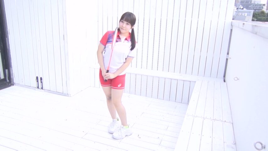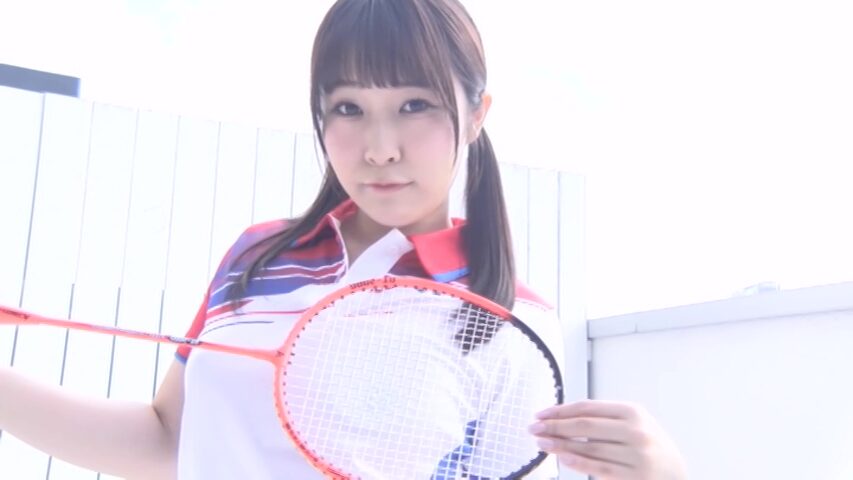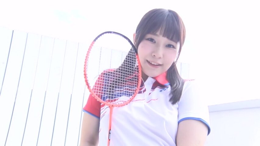 バドミントンのラケットをしっかりと振って素振りするシーンからスタート。