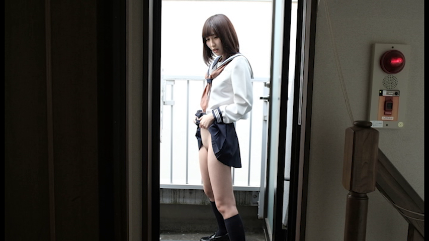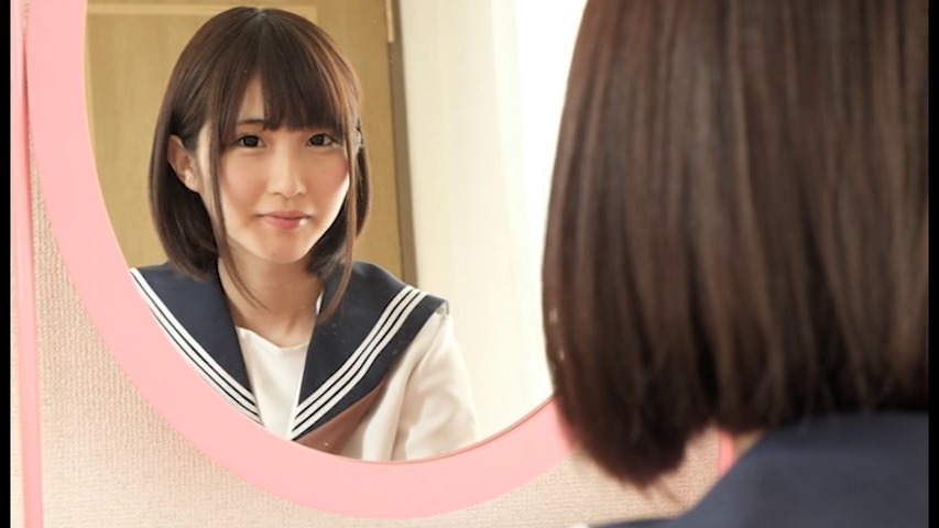 制服シーンから始まり、手ブラや指ブラを見せます。