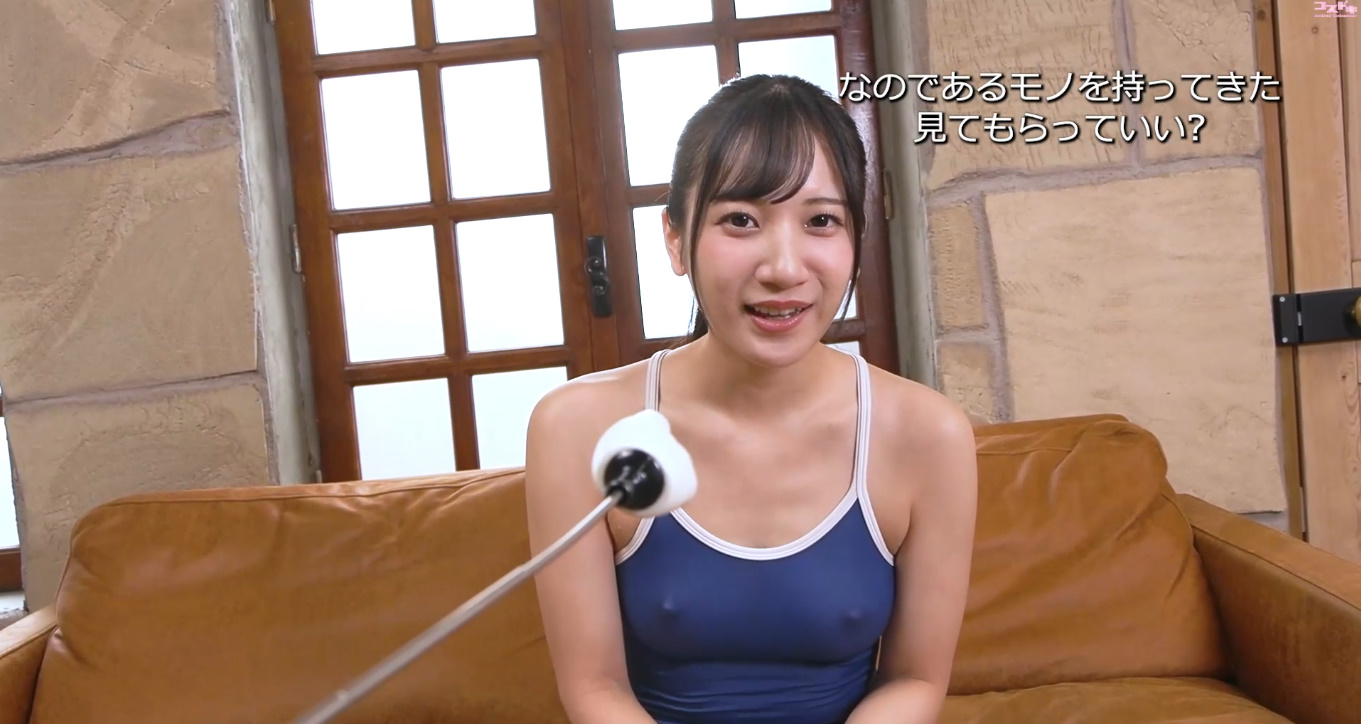 セーラー服姿を披露すると、風が吹いてパンチラします。