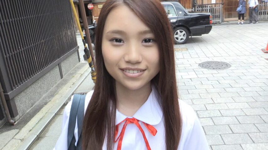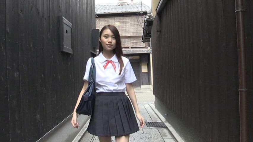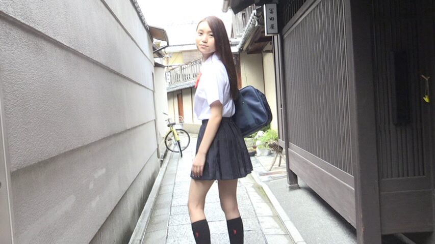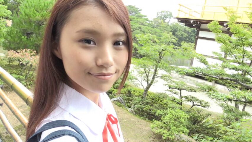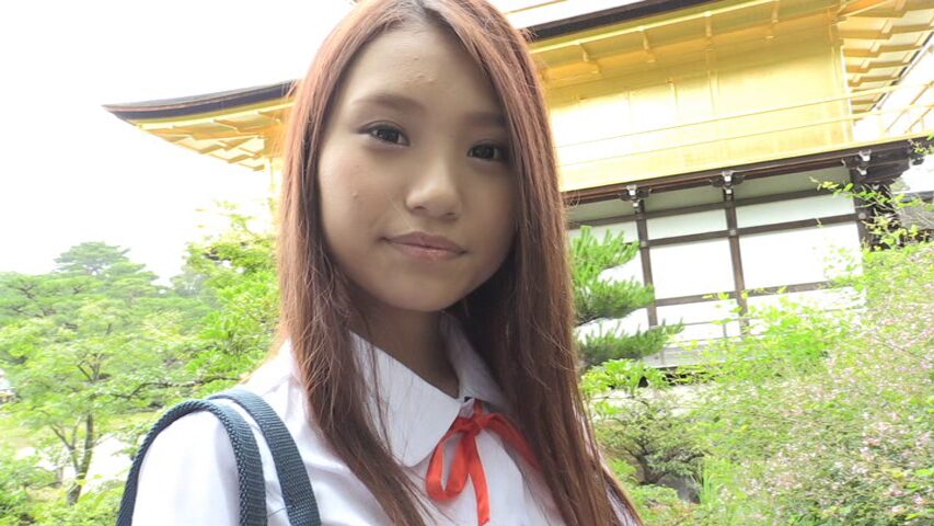 ノーブラ状態の制服を着て、金閣寺や街の中を闊歩し、下からカメラを構えてパンチラします。