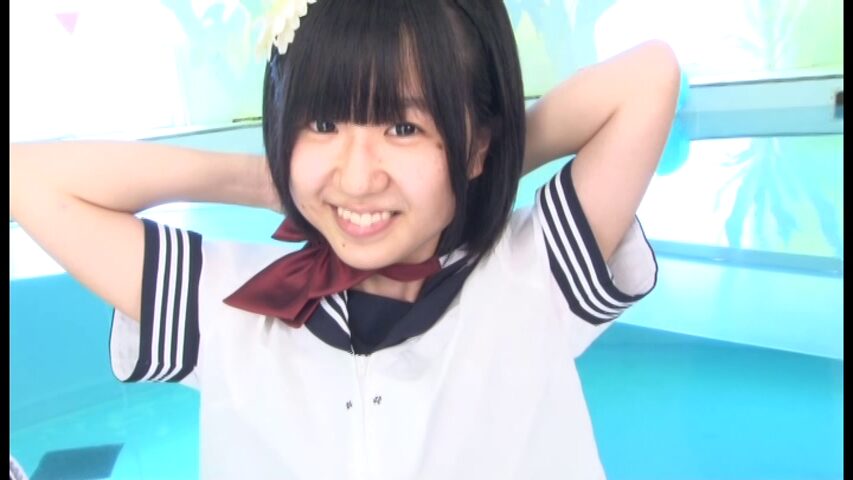 プールの次は、ミニスカートのセーラー服コスプレで登場。