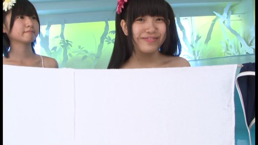 そしてロープにバスタオルをかけて、二人楽しく話しながら着替えていきます。