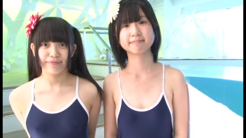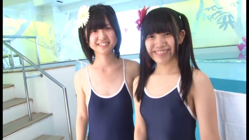 二人とも着替えが終わって並んで立つのですが、同じ水着なのによしのさんの乳首の方が自己主張が強く、チク透けしてしまっています。