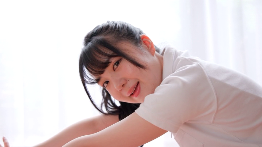 作品の特徴なのですが、初めてのグラビア作品ということで、意識的に何度も顔を大きく写している印象を受けました。