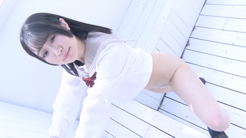 まず最初に屋外で制服を着てスタートすると、イチゴ柄のパンツを見せたり、ずらして半ケツ状態になります。