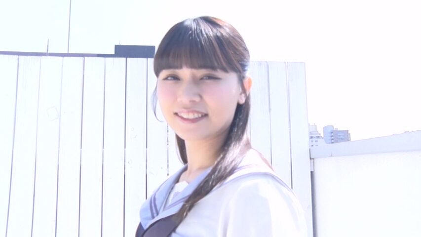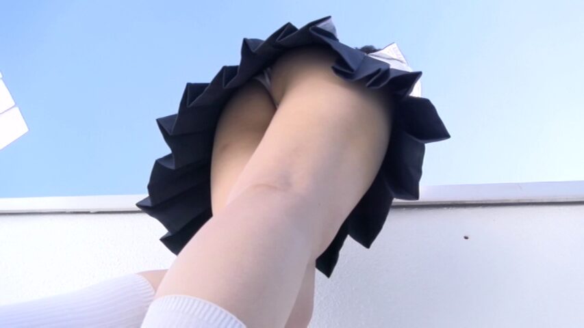 制服姿で屋上に登場するとスカートをまくり上げてロープ一本状態に。