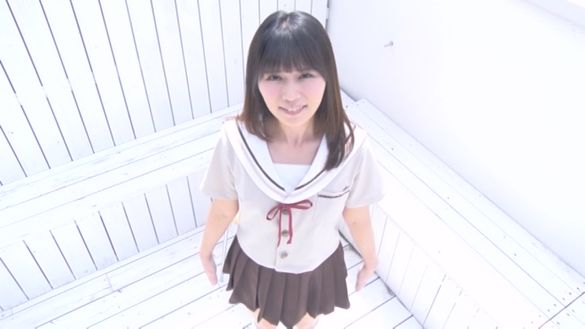 屋上で制服姿でスタートすると、スカートをまくり上げて前貼りをしたスジを見せたり、後ろ向きになってアナルを見せます。
