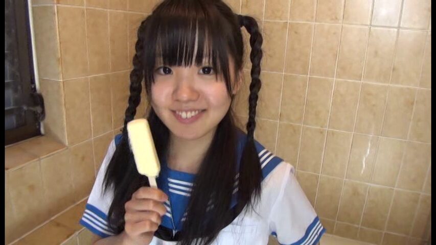 バスルームでは青い制服を脱ぐとビキニからチク透けしています。