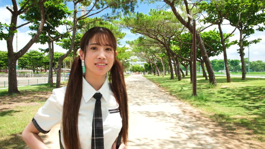 矢野希さんが超ミニの制服を着て歩くと、チラチラとパンツが見えてしまいます。