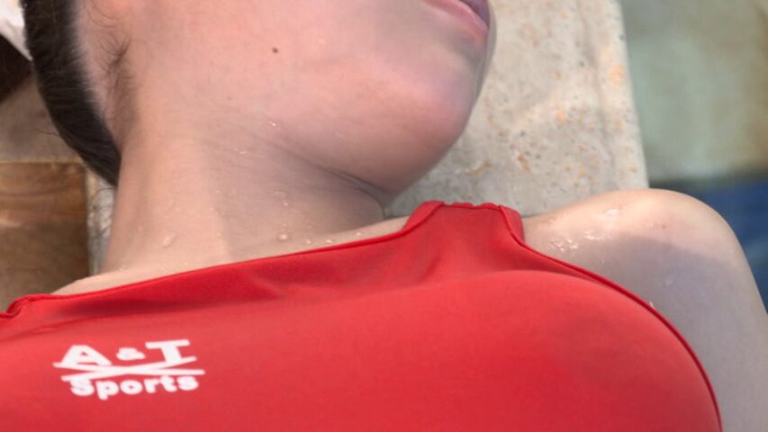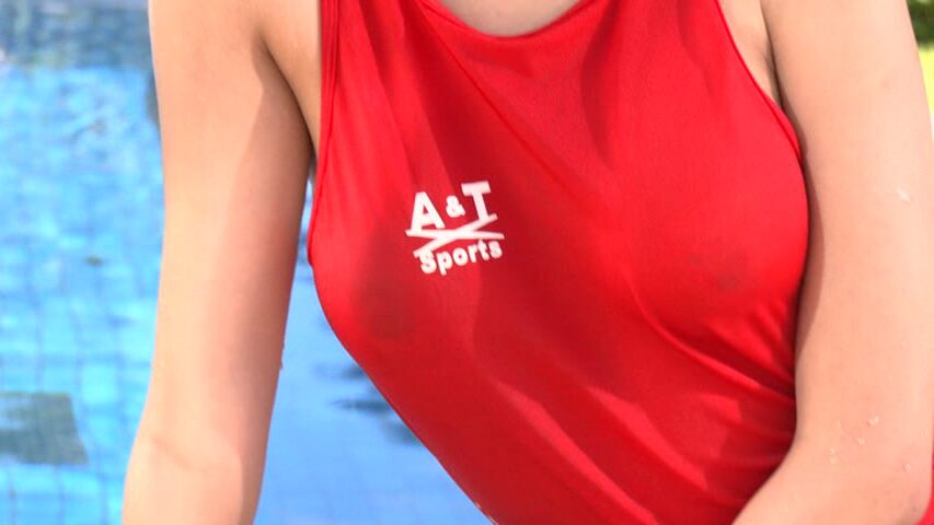 それでも競泳水着を着たプールのシーンでは、わずかにチク透けを見せています。