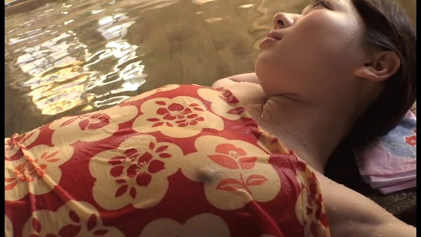 温泉に来ると「あんま見ないでよ」と言いながら浴衣を脱いでいき、水着のまま温泉へ。