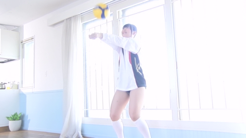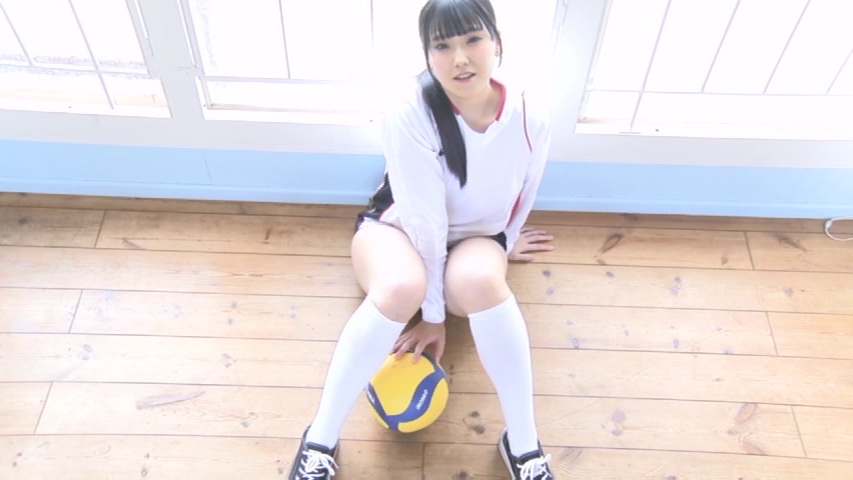 そして上手なバレーボールの技(アンダーハンドパスというそうです)を見せたあとは、床に座って胸を見せながら股をセルフマッサージしています。