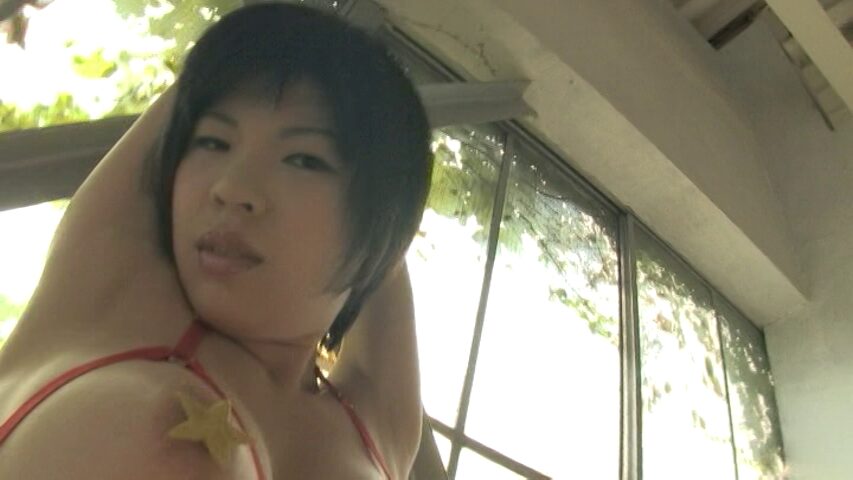 レオタードシーンでも指一本で胸や股間を隠してギリギリ状態に。