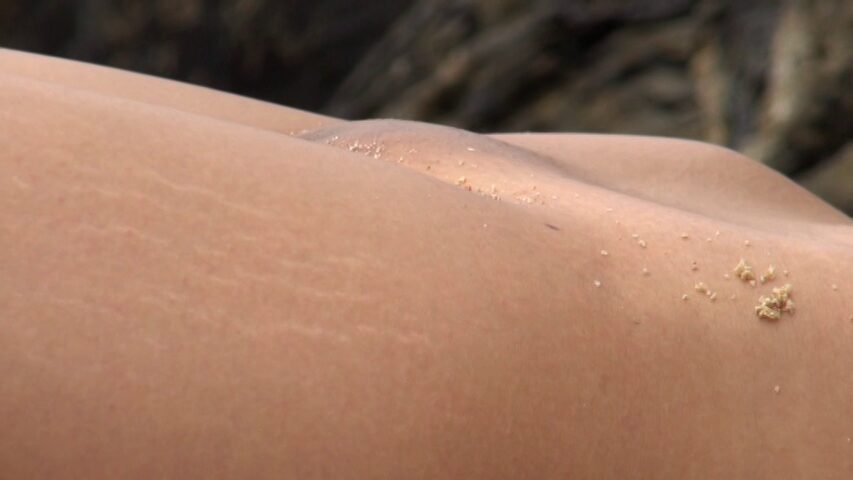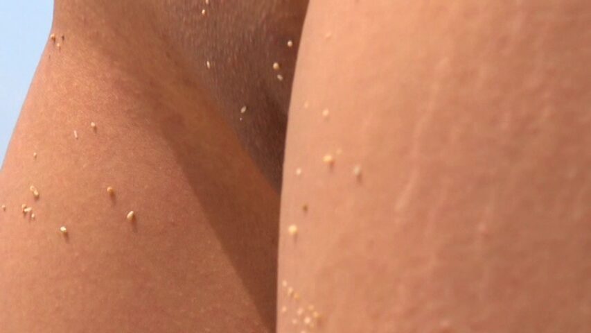 海のシーンでは透けチクや、砂まみれになって縦スジが…