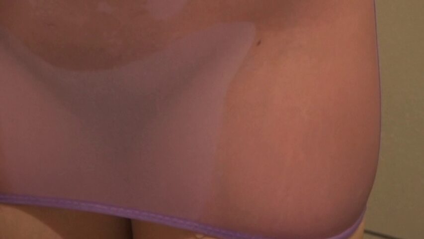 シャワーではスケスケ姿やシャワーで股間を隠しています。