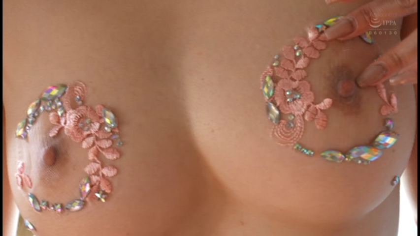 するとノーブラでニップレスをしているのですが、真ん中部分がストッキング素材のようにスケスケでほとんど丸見え状態になっていて、それを画面いっぱいに映し出します。