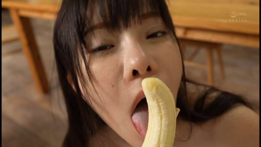 次にまた部屋に入ると上半身裸になった状態でエプロンを着てアイスを舐めたり、台所で疑似セックスを始めます。