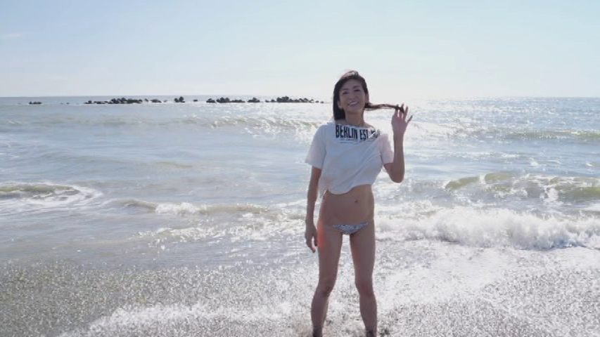 今回も水着姿などを見せて元気で明るくグラビアに挑戦しています。