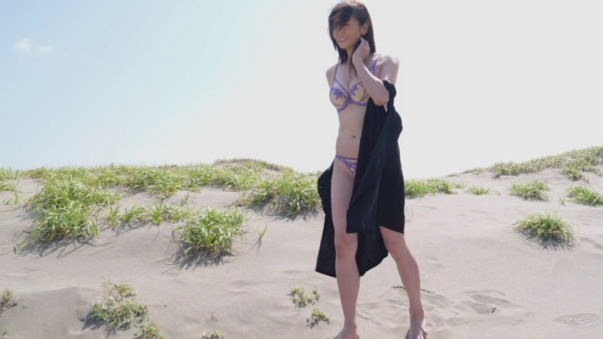 グレーのタンクトップを着た史恵さんからスタートし、早速ビキニ姿を披露します。