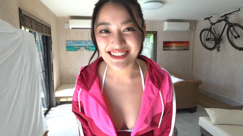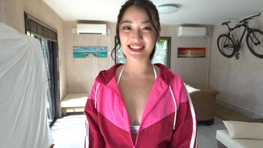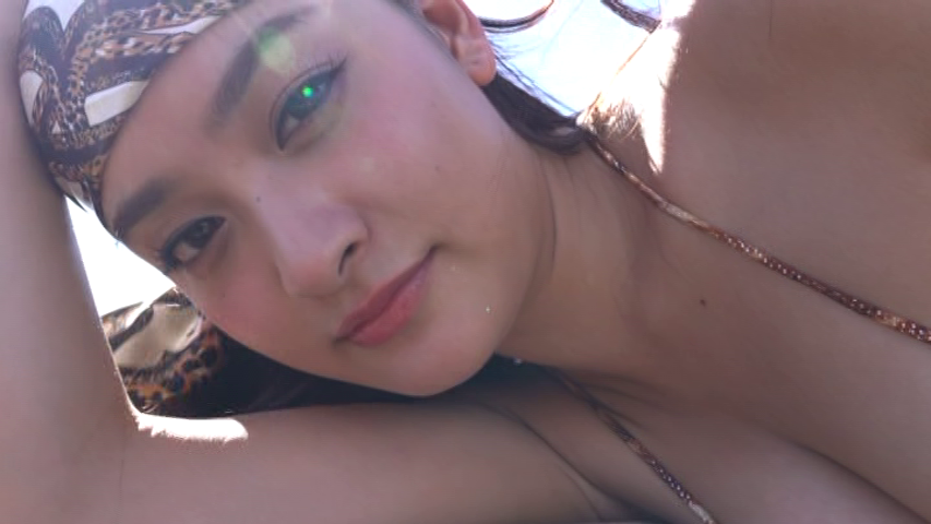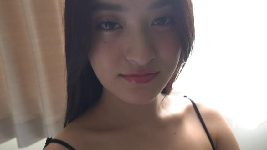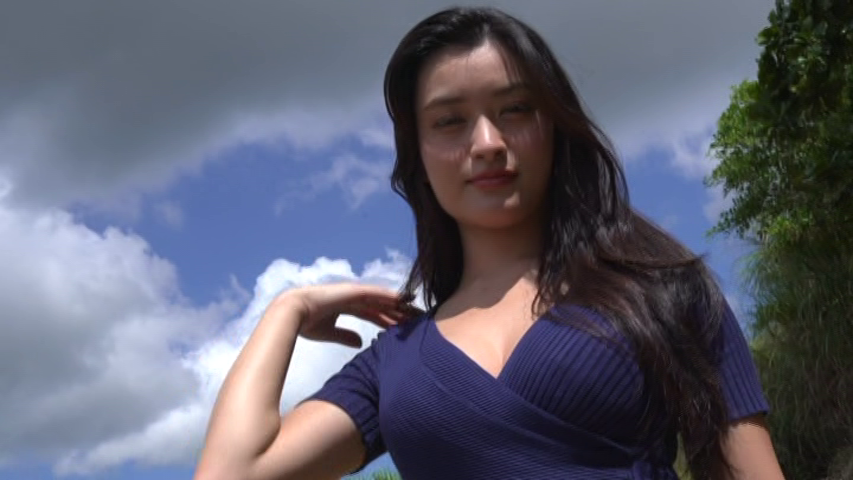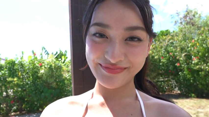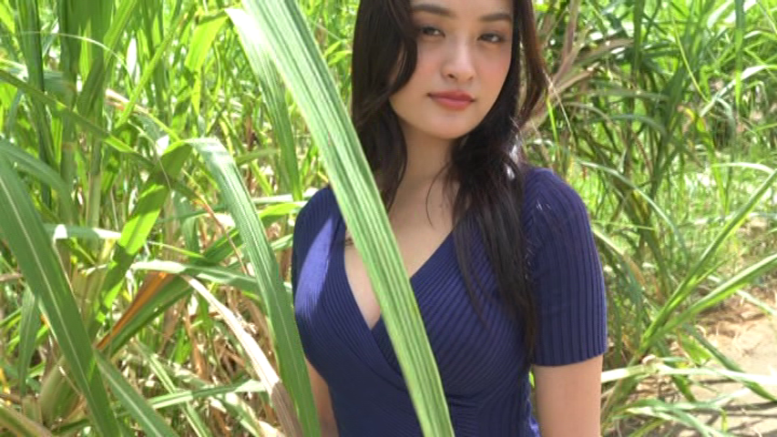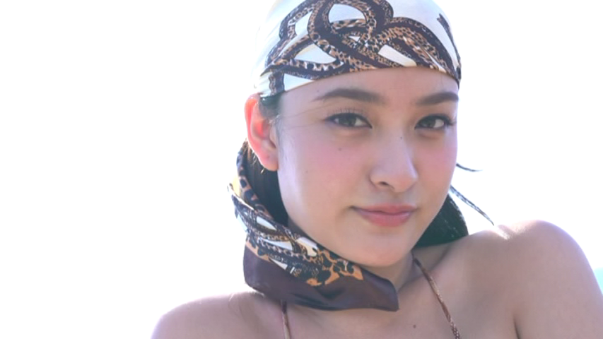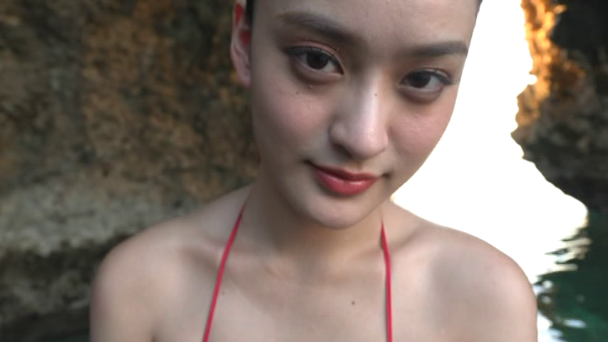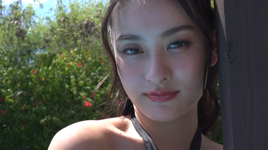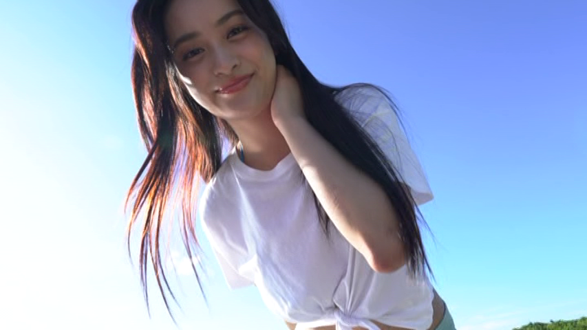 海で楽しそうに笑顔になったり、一方で大人な表情になったりする表情豊かな彼女を見ることができます。