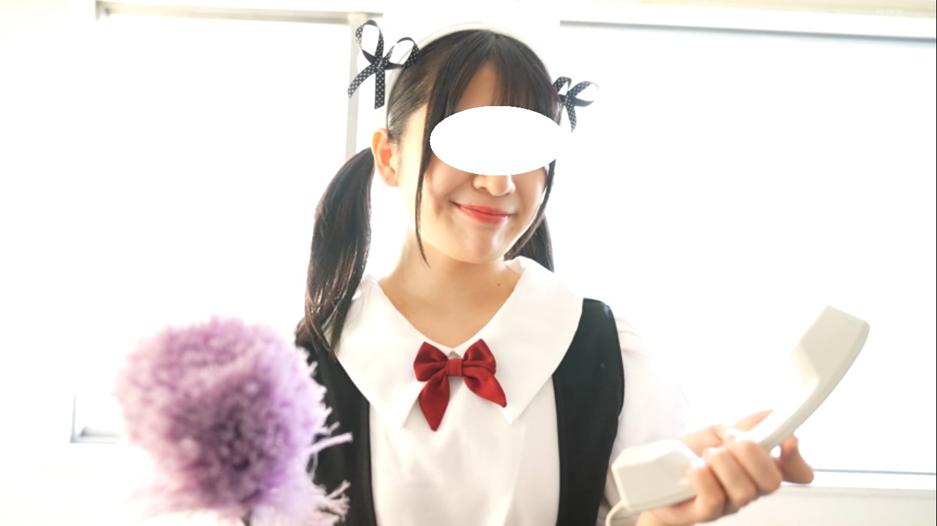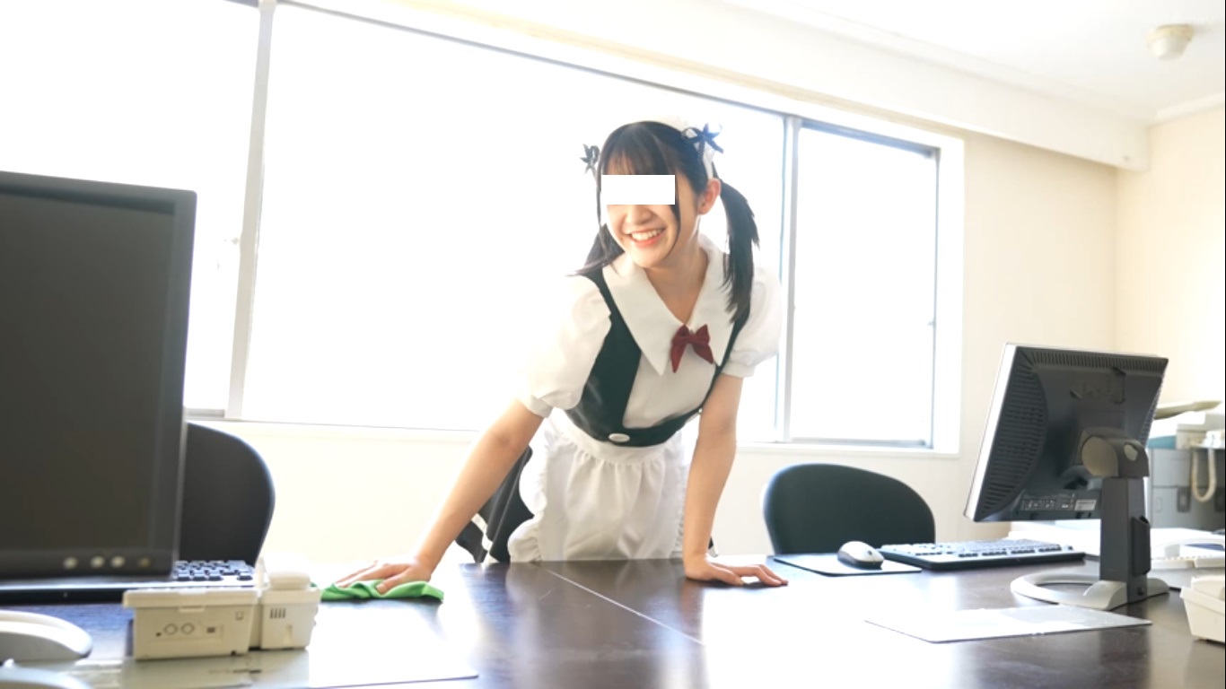 そしてよく似合うメイド姿になるとお掃除を始め、細すぎてギリギリ注意報発令状態のお股を見せつけます。