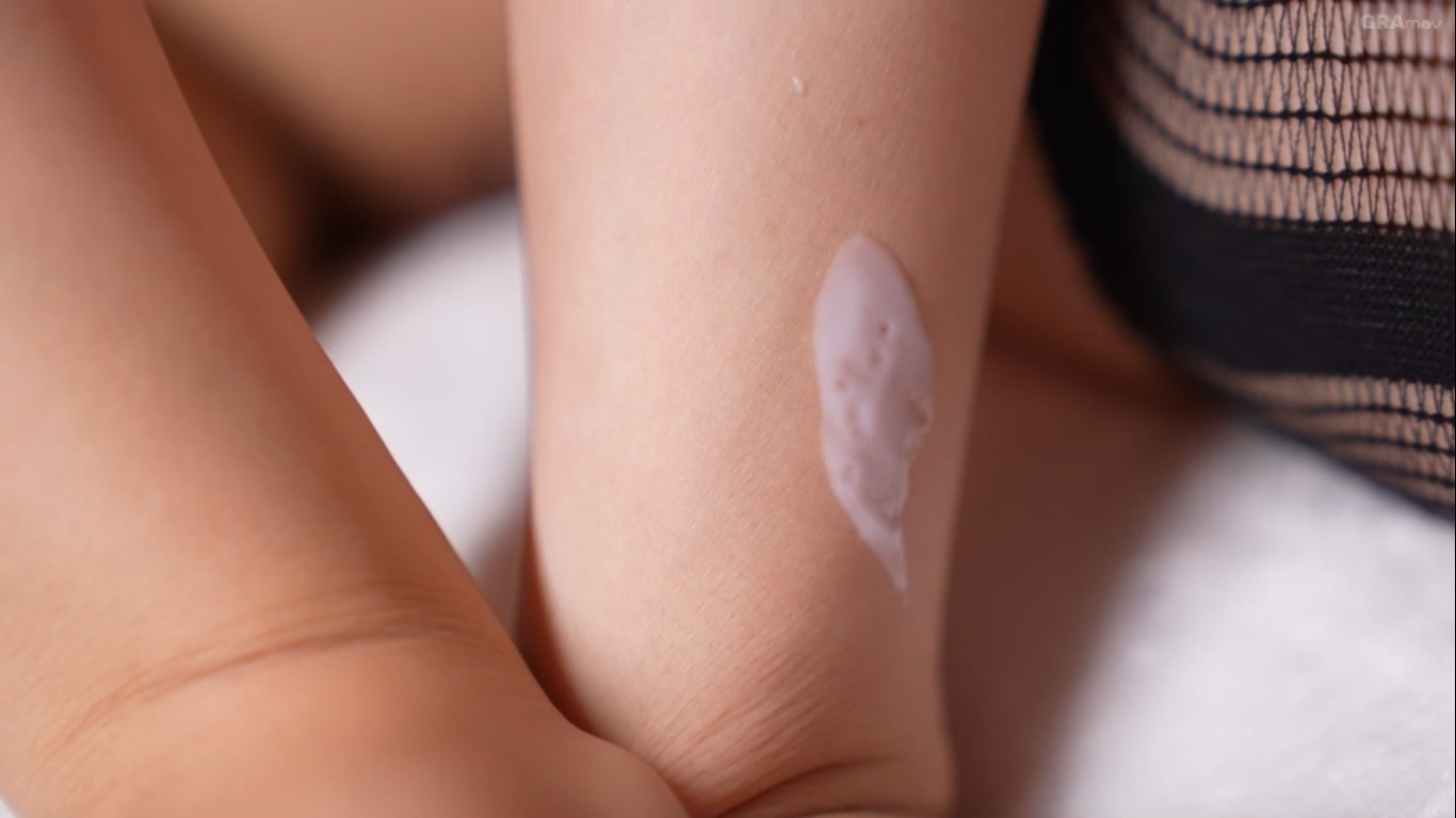 RENAさんが和室で制服を着たシーンでは、横になりながら制服を脱いでいき、リボンだけをつけた状態で全裸になります。